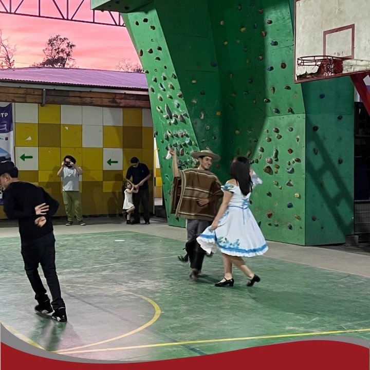 Representaron a nuestra comunidad la pareja conformada por Sofía Sánchez y Eliecer Adasme, ambos estudiantes de segundo ciclo, quienes demostraron su talento, entusiasmo y amor por nuestras tradiciones chilenas.