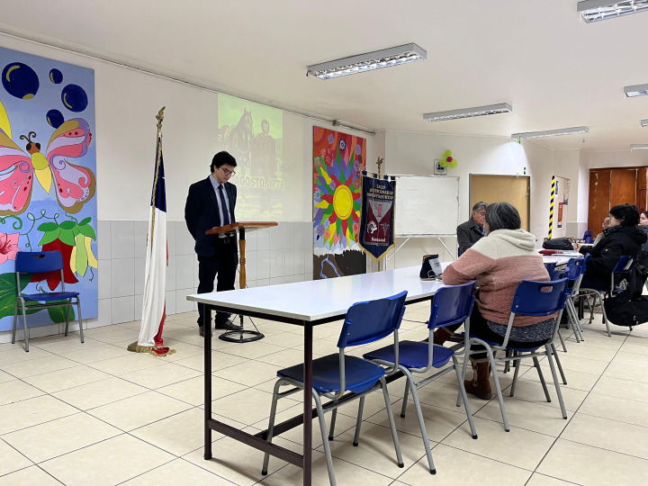 Alumnos participando de la charla del Natalicio de Bernardo O"higgins, dictada por nuestros Profesionales Arturo Orellana y Ernesto Guajardo